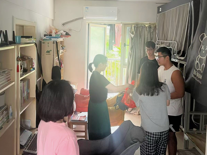 学生宿舍,老师们细致地了解同学们的学习与生活状况,并送上精心准备的月饼等慰问品叮嘱大家要注重健康管理,做到合理作息、均衡饮食、适度运动,度过一个既健康又祥和的中秋假期。此外,学院同步推出“中秋氛围合影”和“AI绘中秋海报”两项线上主题活动鼓励同学们用镜头记录下身边的团圆美景,用现代科技创意表达对健康生活的理解。