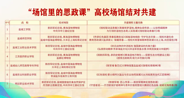 非遗如何“活”在当下?盐城工业职业技术学院思政教师的《瓷刻里的文化密码》给出答案,以大丰瓷刻传承人为例,展现非遗与职业教育的融合之美。“场馆里的思政课”高校场馆结对共建联盟亮相,7所高校分别与新四军纪念馆、黄海湿地博物馆等8个文化场馆结对共建,未来学生可在场馆里听研学体验,让文物“说话”,让育人形式更加丰富。
