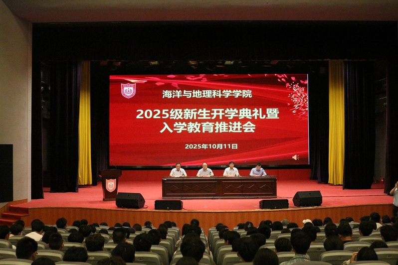 10月11日下午,海洋与地理科学学院举行2025级新生开学典礼暨入学教育推进会。学院领导郝保成、李传武、朱天明出席典礼,党委副书记吴恒仲主持开学典礼。