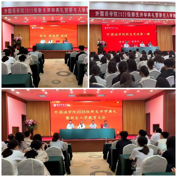 典礼在优秀毕业生代表录制的“学长学姐有话说”寄语视频中拉开帷幕。学院党委副书记、院长周海明代表学院向全体新生表示热烈欢迎。他以“选择即意义”为切入点,阐释拥抱选择与开拓人生可能性之间的内在联系,系统介绍外国语学院作为高层次人才培养平台的师资力量与专业优势,并从“以深度学习定义大学”“以主动创造淬炼能力”“以跨文化沟通成就格局”等三个方面,对新生提出殷切期望与方向指引,激励广大新生以卓越追求和时代担当实现自我价值。