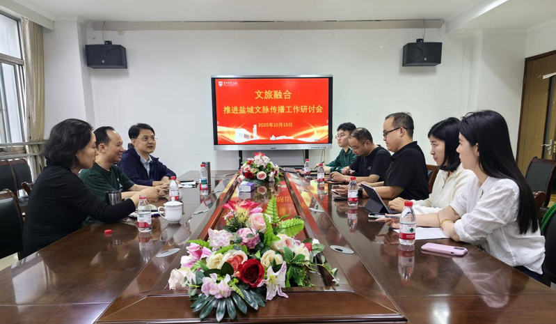 10月15日下午,文学院召开文旅融合推进盐城文脉传播工作研讨会,特邀兼职教师、盐城市文化广电和旅游局副局长侯德志作主旨指导。文学院党委书记吉照远、院长李尧、副院长冯青青,有关专业系主任、专任教师代表出席。