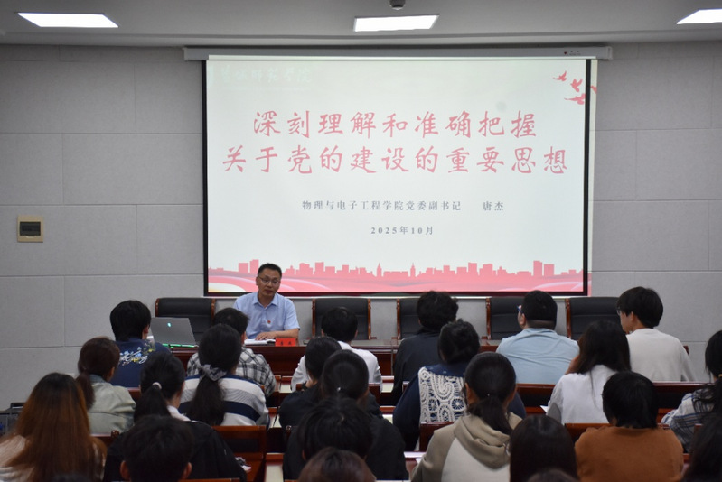 10月15日,物理与电子工程学院在逸夫楼214室举办2025年秋学期入党积极分子培训班开班仪式暨专题党课学习。学院党委书记孙伟,党委副书记唐杰出席开班仪式。
