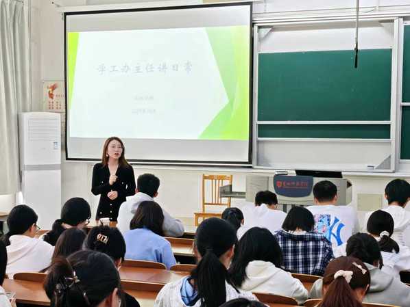 讲座中,朱瑶围绕新生最关心的日常管理工作展开详细解读,从管理制度、行为规范到服务保障,为新生勾勒出清晰的大学生活“行动指南”。在考勤管理方面,明确课堂出勤、早晚自习、集体活动等考勤要求,强调规律作息对学业的重要性;在宿舍管理上,详解卫生评比标准、安全用电规范及文明宿舍建设要求,提醒新生营造安全和谐的居住环境;在评奖评优环节,清晰梳理奖学金、助学金、荣誉称号等的申报条件与流程,鼓励新生以正向激励为导向规划大学生活。