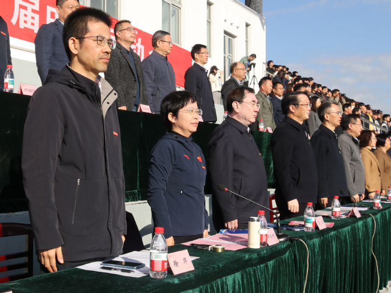 开幕式在庄严的国歌声中拉开帷幕,张玉勤致开幕词。他指出,学校始终坚持“五育并举”,把体育融入人才培养全过程,一体推进竞技体育、专业体育、公共体育高质量发展。田径场是竞技的赛道,也是展示盐师人生机蓬勃的精神风貌的舞台。他希望,参赛的师生在运动中活动筋骨、抖擞精神,尽情享受活力迸发的乐趣。全校师生积极参与运动为健康“注资”“充电”,锻造优秀的身体素质,以强健的体魄和饱满的精力应对各种挑战,为人生长远发展蓄能助力。参赛师生秉承“相互理解、友谊、团结和公平竞争”的奥林匹克精神,尊重对手、尊重队友、尊重规则、尊重裁判,胜不骄、败不馁,勇于担当和突破,为集体争光,在运动中砥砺优秀的人格品性、磨砺百折不挠的意志,把继续战斗的韧劲融入争先创优的骨子里。