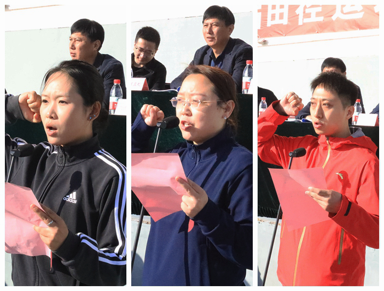 开幕式上,外国语学院叶美纯同学、文学院葛媛媛老师、体育学院方炜老师分别代表学生运动员、教职工运动员、裁判员宣誓。