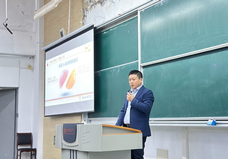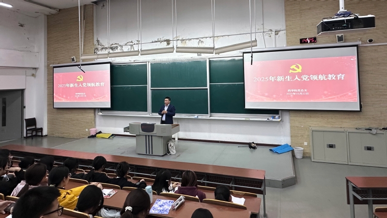10月22日,药学院党总支书记章春杰以“以实际行动争取加入中国共产党”为题,为2025级全体新生讲授入党领航教育课。