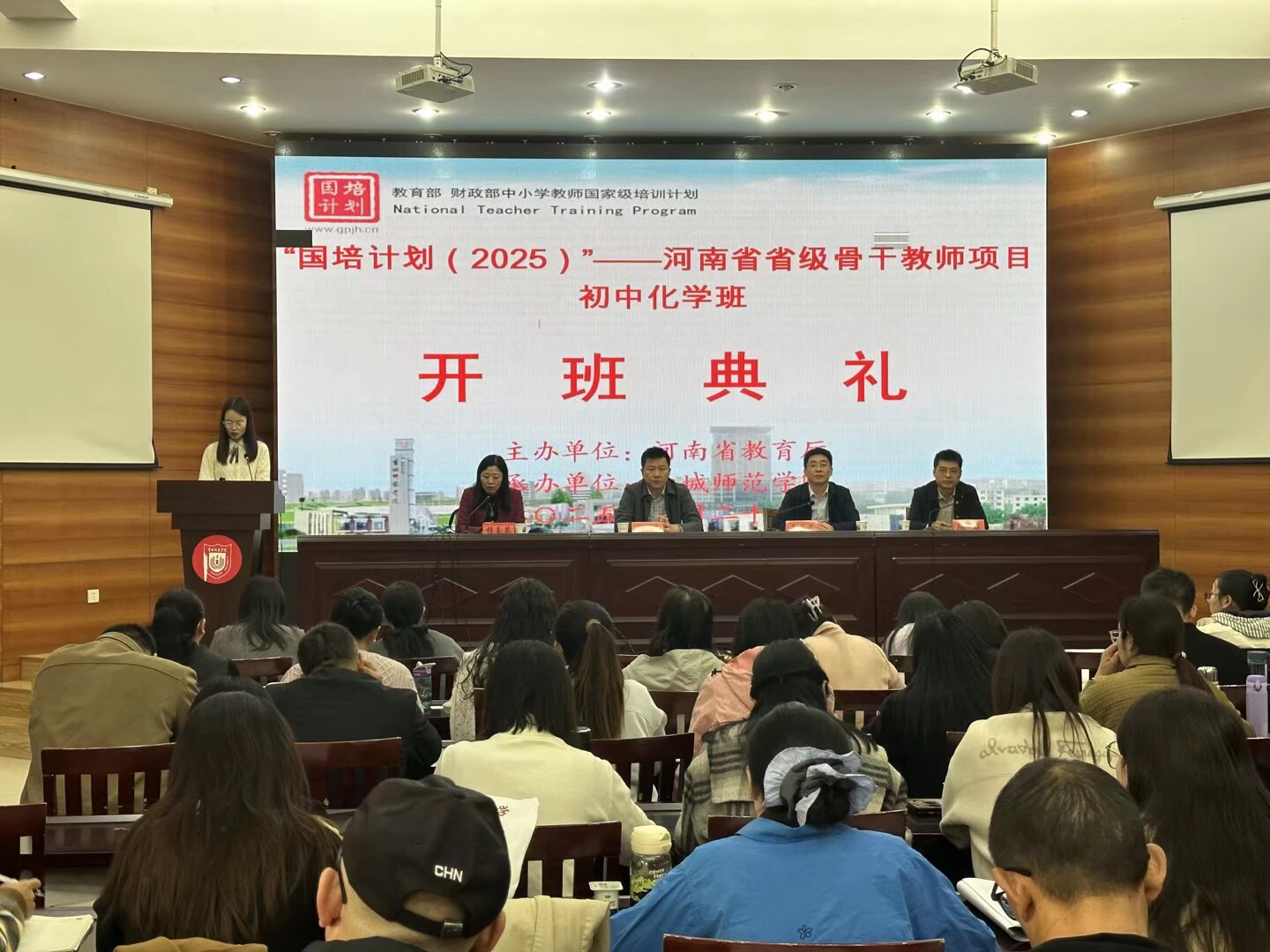 10月23日上午,“国培计划(2025)”——河南省省级农村骨干教师能力提升项目初中化学班开班仪式在我校通榆校区国培报告厅举行。化学与环境工程学院党委书记刘洋,成教处副处长、继续教育学院副院长吴国君,培训项目首席专家杨玉琴教授以及来河南的50名一线初中骨干化学教师参加开班仪式。