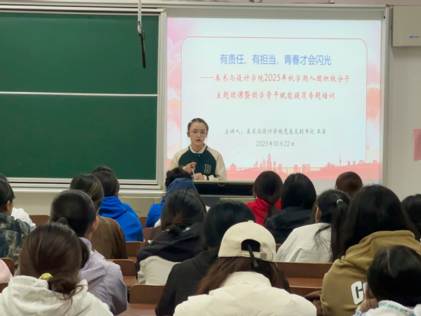 10月22日下午,美术与设计学院在艺术楼109教室举办2025年秋学期入团积极分子主题团课暨团学骨干赋能提质专题培训,学院党总支副书记王寅出席培训会。