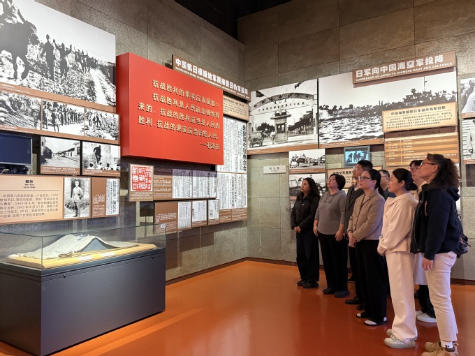 在“正义必胜 和平必胜 人民必胜”——中国战区反法西斯战争胜利暨审判日本战犯史实展馆,党员参观学习“侵略者的罪恶”“不屈的抗争”“法西斯的投降”“正义的审判”“争取持久和平”五大板块,深入了解中国战场作为东方主战场为世界反法西斯战争作出的重大贡献,以及战后对日本战犯进行正义审判的历史过程。党员们驻足展板、实物前,深切感受中华民族危难时刻的勇气与生命力,进一步领悟伟大抗战精神内涵与价值。