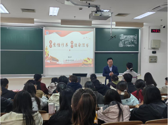 10月29日下午,人工智能学院党委副书记、院长朱立才在主楼B312教室为入党积极分子主讲《锤炼党性修养 践行使命担当》专题党课。学院69名入党积极分子参与学习。