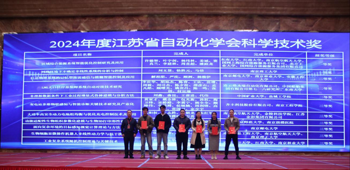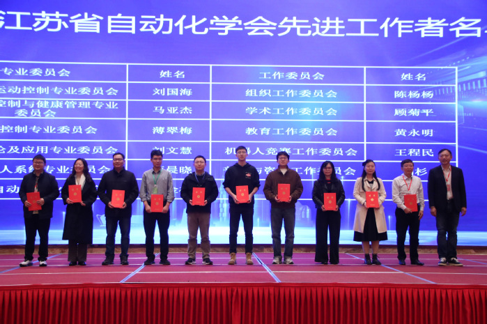 在大会主旨报告环节,香港理工大学陈文华教授、北京航空航天大学胡庆雷教授、同济大学董海荣教授和东南大学刘洪海教授分别作题为“Control Engineering in Future Highly Automated Society”“多源干扰和故障下航天器自主安全控制”“环境主动理解驱动的轨道交通自主运行关键技术”和“人体行为功能感控与智慧医疗”的主题报告。大会报告期间还举行了省自动化学会的年度颁奖仪式。