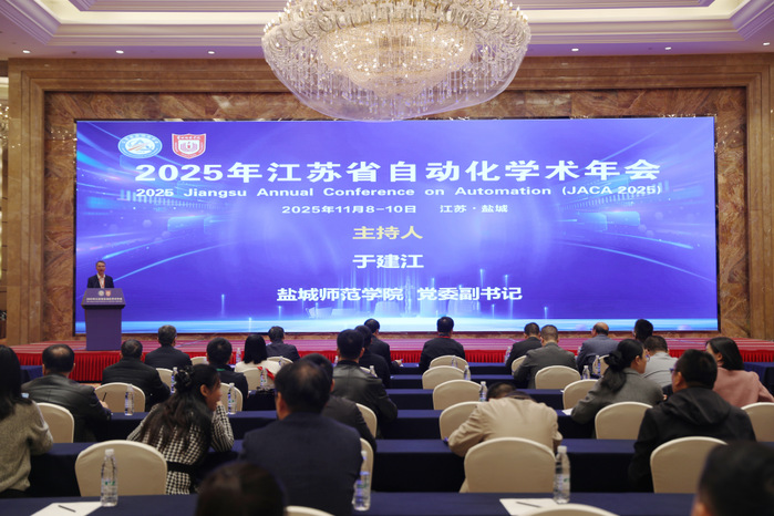 11月8日—9日,2025年江苏省自动化学术年会在盐城召开。江苏省自动化学会理事长李世华,省科协二级巡视员王小锋,学校党委书记张玉勤出席开幕式。党委副书记于建江主持开幕式。