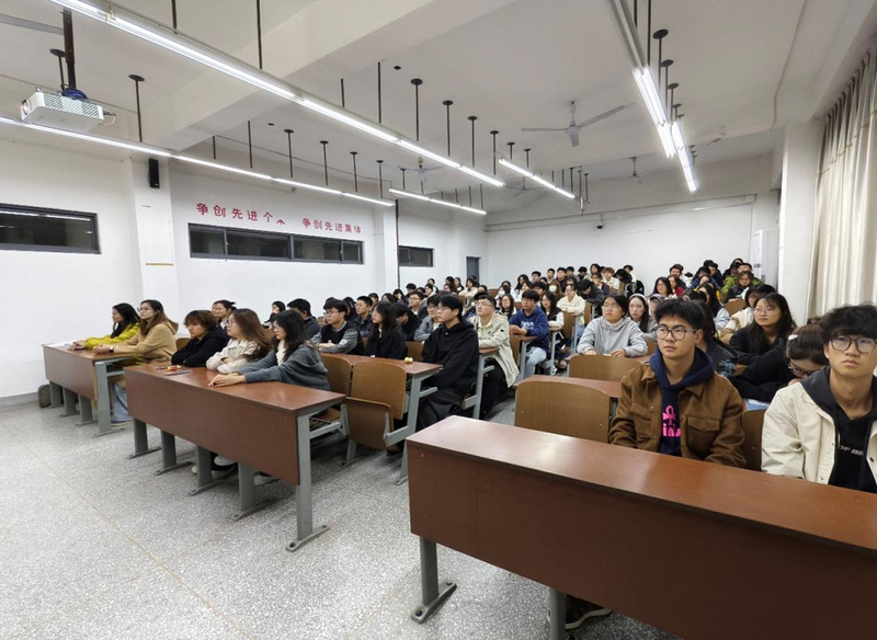 美合日阿依·阿不都米吉提目前服务于新疆克州阿克陶县巴仁乡古勒巴格村小学。她介绍了西部计划的报名流程、岗位分配、薪资待遇、工作环境等内容,并从初心启航、扎根岗位、感悟沉淀、展望未来四个方面分享自己在西部计划服务过程的收获感悟。她从“延续帮扶活动、传播志愿精神、扎根基层发展”等方面呼吁更多青年听从内心、奔赴热爱,为西部发展注入青春力量。在答疑解惑环节,同学们积极提问、踊跃发言,她逐一给予细致专业的解答。