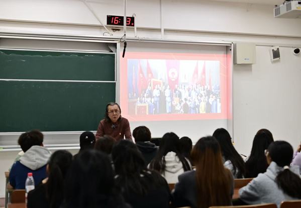 11月12日下午,美术与设计学院“在绘画作品中看见可爱的中国”系列专题讲座在学院504教室举行。学院党总支书记刘军主讲,秋学期入党积极分子及部分学生代表100余人参加讲座。