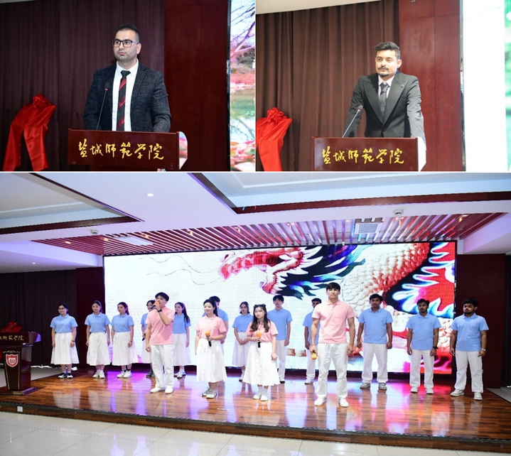 揭牌仪式现场氛围热烈,中外师生共同演绎文化交融的生动场景。盐城师范学院土耳其籍教师吉米作为外籍教师代表,分享了在盐执教期间的文化感悟与跨文化交流体验;孟加拉籍留学生阿明以亲历者视角,讲述了与盐城结下的不解之缘,传递出异国青年对这座城市的深厚情感。中外学生联袂带来诗朗诵《读中国》,用深情款款的演绎传递文化共鸣,展现了文明互鉴的蓬勃活力。活动还同步发布了地方文化系列丛书出版计划及相关文化交流活动成果,为中心后续工作拉开序幕。