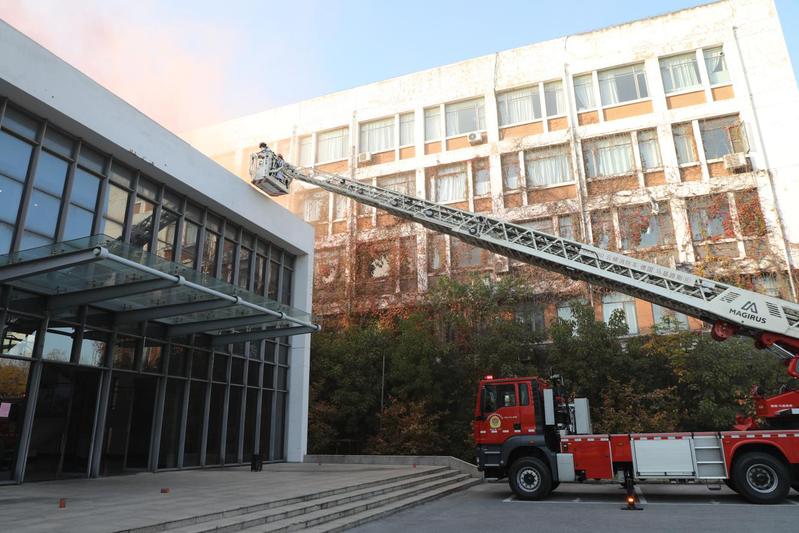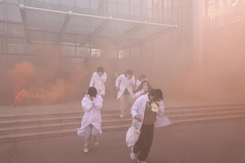 11月19日下午,我校在新长校区生化实验楼开展实验室消防和高空救援应急演练。学校党委常委、副校长汤克明,盐城经济开发区消防救援大队指导员王海峰现场指导。国有资产与实验室管理处处长蔡志宏负责现场指挥。