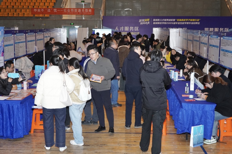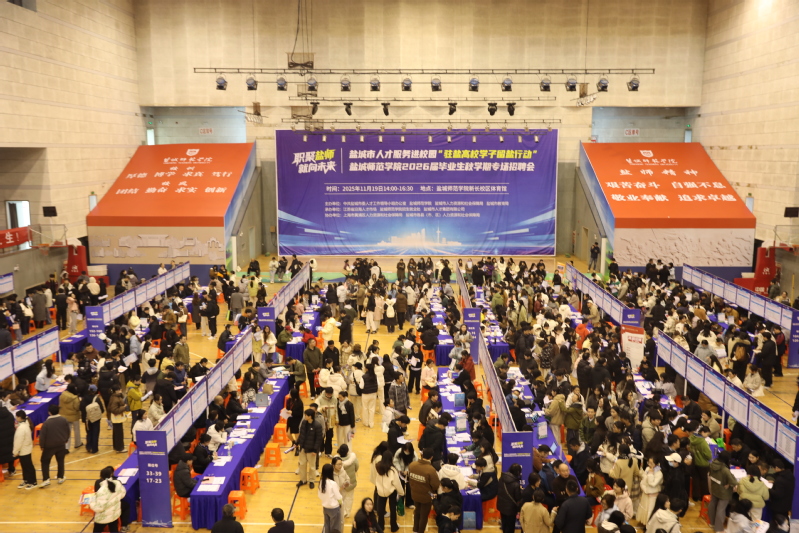 11月19日下午,盐城市人才服务进校园“驻盐高校学子留盐行动”暨盐城师范学院2026届毕业生秋学期专场招聘会在我校新长校区体育馆举办。学校党委常委、副校长张桂华,盐城市人社局党委副书记、苏北农村人才市场管委会办公室主任还少丹,上海市黄浦区人才服务中心及盐城市亭湖区人社局负责同志现场指导,深入了解企业招聘需求与毕业生求职意向,鼓励同学们树立信心、把握机遇、积极就业。