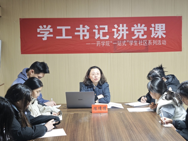 11月19日,药学院在学生公寓二号楼“一站式”学生社区大厅开展秋学期入党积极分子专题党课。学院党总支副书记陈倩倩以“践行‘四讲四有’标准 努力成为合格共产党员”为题引导药学院学子坚定理想信念、锤炼过硬本领,以实际行动诠释青年担当。