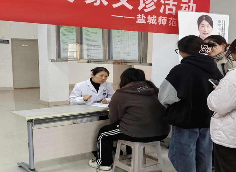 本次活动特邀盐城德馨医院消化内科副主任医师翟金海、妇产科副主任医师李宝华、妇科中医师曹燕等专家亲临坐诊,为广大同学提供了一场暖心且专业的健康服务与中医药文化体验。义诊现场,专家通过传统诊疗方式,耐心细致地为同学们搭脉问诊,深入了解其生活习惯与身体状况,并为来现场咨询的每位同学量身定制调理方案。