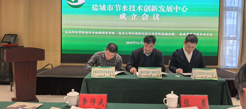 据悉,盐城市节水技术创新发展中心由我校海洋与地理科学学院、南京大学环境规划设计研究院盐城分院、市节水办共同发起,汇聚了多方优质资源。成员单位涵盖盐城工学院、盐城市农业科学院、江苏沿海水利科学研究所、射阳县水利试验站、江苏省水文水资源勘测局盐城分局、盐城市水利勘测设计研究院有限公司、江苏博克斯科技股份有限公司(建湖)等高校、科研院所,企业代表则有江苏君霖纺织科技有限公司、江苏大吉环保能源有限公司等参加。中心将充分发挥“政产学研用”协同创新优势,打通节水技术研发、成果转化、产业应用的全链条,为盐城市水资源可持续利用与节水产业高质量发展提供有力支撑。