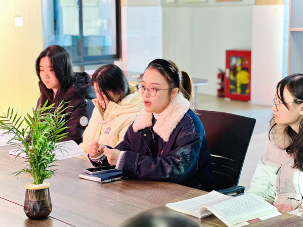 在主题交流环节,美23(2)美术S班马悦围绕勤俭节约精神的时代内涵、美23(5)环境班许琳围绕焦裕禄同志的感人事迹、美23(6)环境班罗志化围绕共产党人的初心与使命等主题作微党课宣讲。