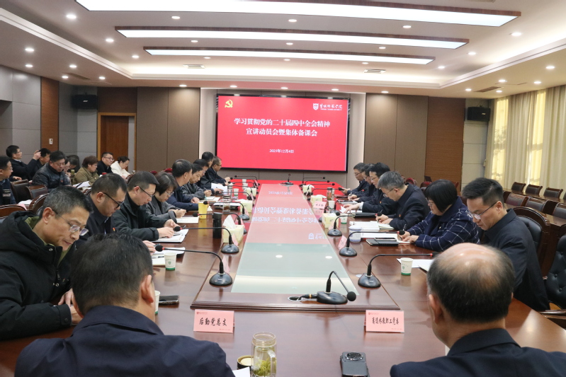 12月4日下午,我校召开学习贯彻党的二十届四中全会精神宣讲动员会暨集体备课会。学校党委书记张玉勤作动员讲话并作专题备课辅导。
