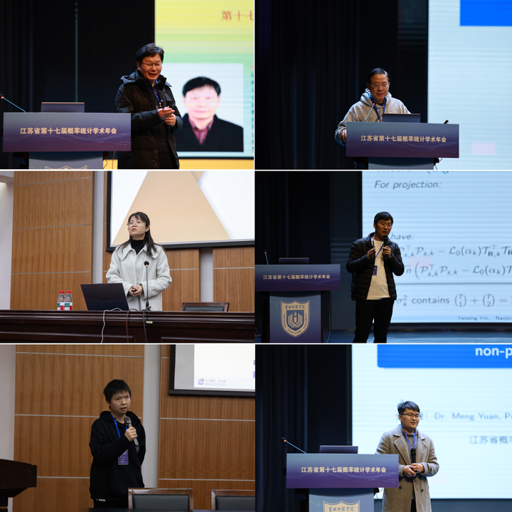 年会期间,学术交流氛围浓厚、成果丰硕。戴万阳教授、东南大学金加顺教授等专家学者围绕人工智能、大模型等热点领域作大会特邀报告,分享前沿研究理念与实践成果;会议设置分组大报告及三个分会场报告,50余名学者聚焦概率统计前沿方向,逐一分享最新研究成果,开展深度学术研讨,为学科发展凝聚智慧共识。同时,江苏省概率统计学会顺利完成第九届理事会与常务理事会换届选举,为学会后续工作有序开展夯实组织基础。