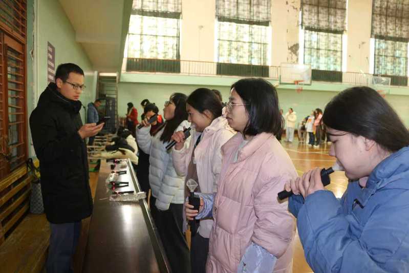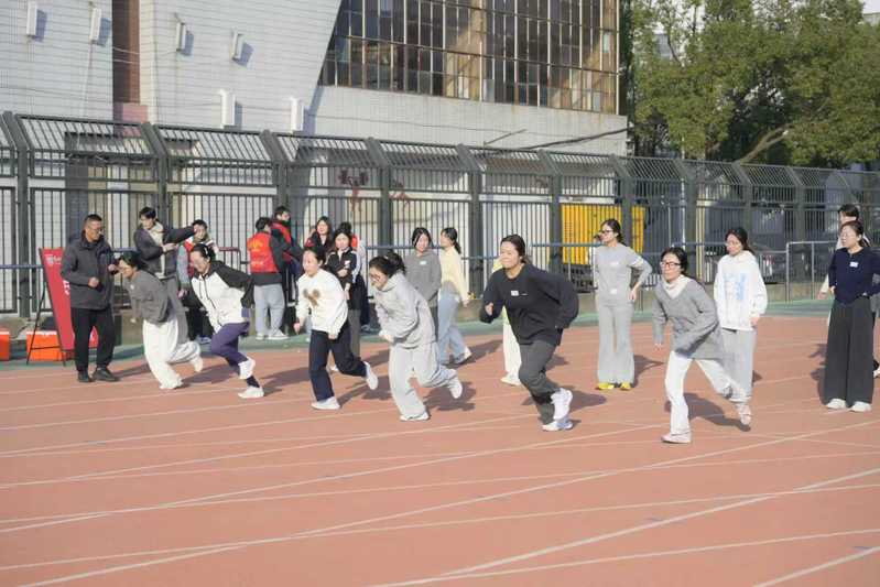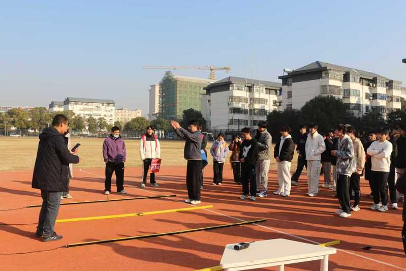 参加抽测的400余名学生按性别科学划分为16组,每组20—30人,实行“专人带队、分时段错峰”测试模式。南通大学监测团队负责成绩实时录入与数据校验,我校体育教师与学生志愿者组成引导专班,全程提供流程指引与技术协助;从学生集合整队、项目衔接过渡到数据核对确认,各环节无缝衔接、规范有序。