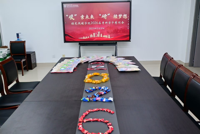 12月10日,绿色低碳学院在公共教学楼A209举办“‘碳’索未来,‘研’续梦想”考研慰问会。学院党委书记徐晓亮,党委副书记、院长黄兵等学院领导班子成员及全体考研学生参加活动。学院党委副书记蒋蕾主持活动。