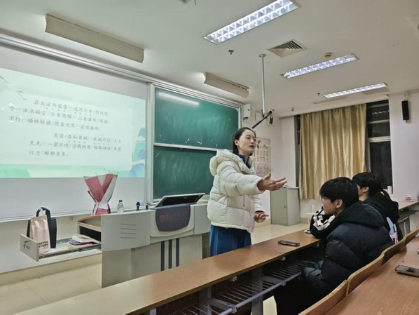 针对以上问题,在表达逻辑构建上,她提出“概括主题、划分层次、明确目的、联系背景、确定基调、找出重点”六大准备步骤,为高效表达搭建清晰框架。在语言技巧传授上,她详细讲解了情景再现、对象感等内部技巧,以及停连、重音等外部呈现方法,并以《岳阳楼记》选段为例生动解析了“低沉型”语势的运用,让同学们在经典文学的韵味中,体悟到语言表达的节奏与情感。此外,她还就眼神交流、面部状态、手势运用等肢体语言细节展开具体指导。