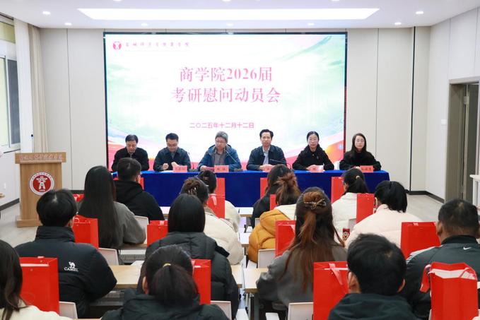 12月12日上午,商学院在逸夫楼二楼李想数字经济报告厅举办2026届考研学子慰问动员会。学院党政领导、毕业班辅导员、考研学生代表参加会议。学院党委副书记秦圣阳主持会议。