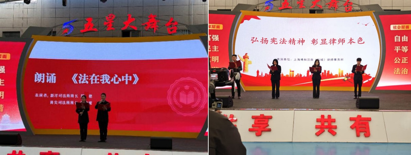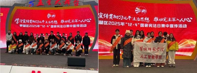 人工智能学院深入基层一线,将法治宣传融入群众文化生活。学院组织学生赴五星村开展“五星村大舞台”宪法宣传实践活动,设置政策解读区、文艺表演区和互动交流区。快板《“八五”普法规划》、诗朗诵《法在我心中》等节目以群众喜闻乐见的形式传播法治理念;“有奖问答”“以案释法”等环节则有效提升居民对宪法知识的理解与应用能力。