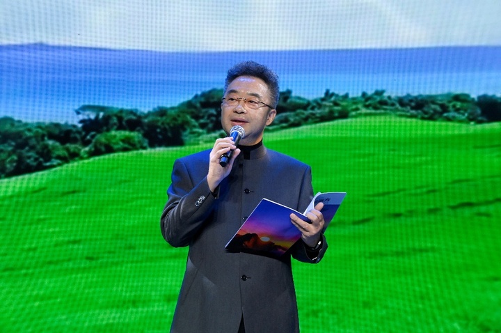著名表演艺术家丁建华这是第二次参加义海的诗歌朗诵会。2015年她曾参加义海创作三十年诗歌朗诵会。丁建华这次朗诵了义海的作品《金鱼的墓碑》,并与义海合作朗诵了《西茉纳之歌·流浪》。丁建华在朗诵艺术上精益求精的艺术精神,深深感染了在场的每一位听众。朗诵结束后,丁建华说:“朗诵,是让文字获得第二次生命的过程。今天,当我再一次站在盐城的舞台上,用声音走进义海老师的诗歌世界,依然能感受到那份纯粹的艺术震颤。从《西茉纳之歌·流浪》的流动与诗意,到《金色的墓碑》的庄重与深刻,每个字都承载着情感的力度,美学上的纯粹。声音的艺术,是分寸,是理解,更是对创作者最深的致敬。感谢诗歌,感谢这片土地,让我们在同一个时空,共同抵达远方。”