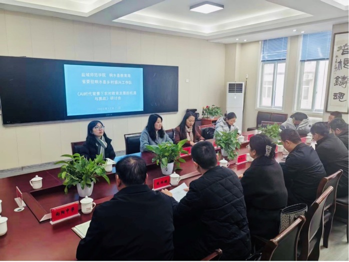 12月11日下午,我校江苏农村教育发展研究中心与省委驻响水乡村振兴工作队、响水县教育局联合开展了“AI时代背景下乡村教育发展的机遇与挑战”专题研讨会。响水县委副书记、省委驻响水乡村振兴工作队队长冯树春,响水县教育工委副书记温波,教育科学学院党委书记杨日晨出席并讲话,教育科学学院副院长,农教中心副主任伏干主持会议。响水县教育局党委副书记,南河镇合兴村第一书记孟明燕以及来自乡村教育一线的中小学校长、教师代表和中心成员参加研讨。