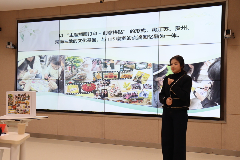 手工赛道以“寝聚地域风,手作忆温情”为主题,鼓励寝室成员协作创作,既彰显家乡文化特色,又融入共同生活记忆。参赛作品形式丰富多样,微缩模型、创意拼贴画等兼具观赏性与故事性。美术与设计学院《袖珍园居》将江南造园艺术浓缩于方寸之间,烟雨诗意跃然眼前;化学与环境工程学院《山河映“寝”意,烟火聚温情》融合河南古今风华、贵州山水人文、江苏江南烟火三大地域元素,诉说着乡情与友谊;音乐学院《宿舍温情/地域文化》让粗犷大气的徐州文化与婉转细腻的盐城文化碰撞交融,诠释了尊重和谐的寝室氛围。凭借在地域文化表达、创意呈现与情感传递上的突出表现,这三件作品脱颖而出,荣获该赛道一等奖。