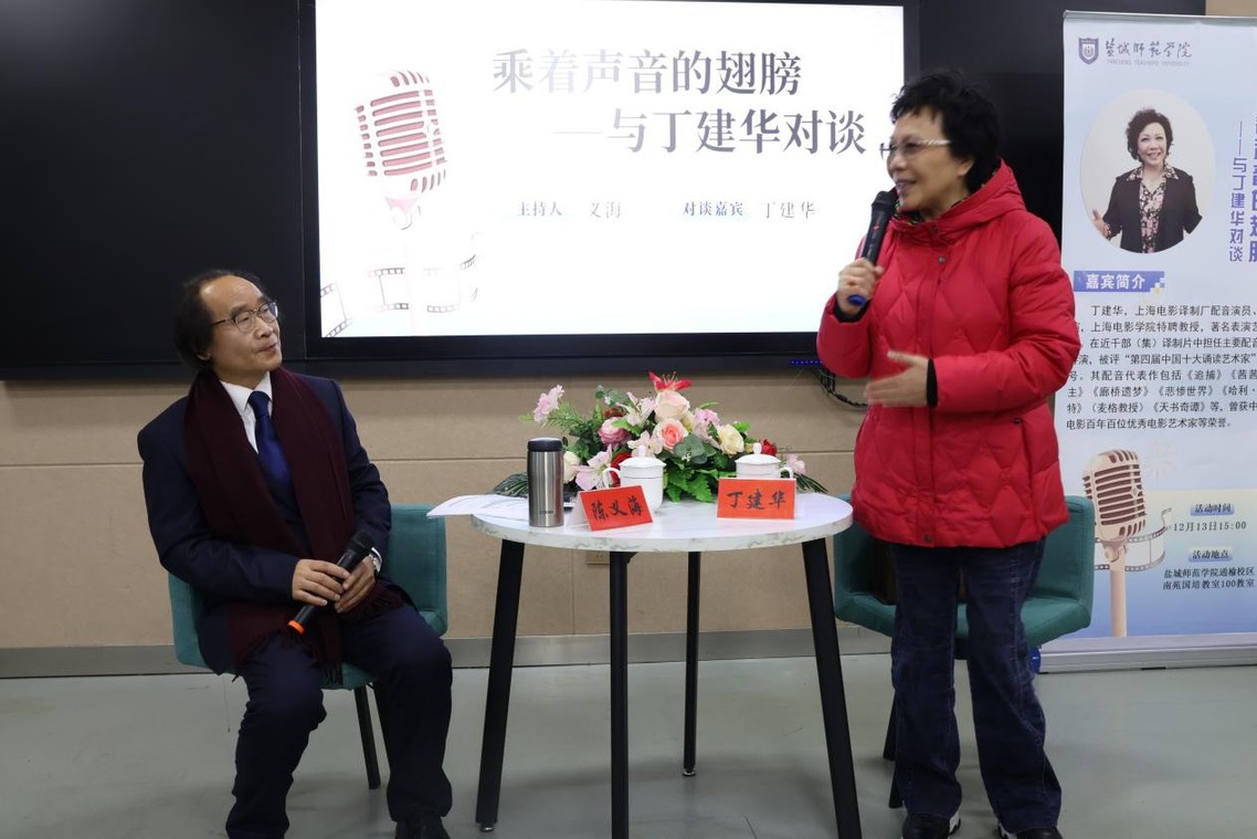 12月13日,文学院特邀上海电影译制厂配音演员、导演,上海电影学院特聘教授丁建华举办“乘着声音的翅膀”主题座谈会。