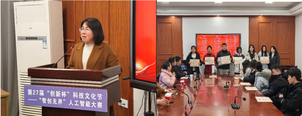 12月17日,我校第27届“创新杯”科技文化节之“智创无界”人工智能大赛颁奖仪式顺利举行。本次大赛由校团委、创新创业学院、人工智能学院共同主办,盐城异数科技有限公司、深圳慧通商务有限公司协办,吸引了全校近400名学生参与,充分展现出学子在人工智能领域的创新活力与实践能力。