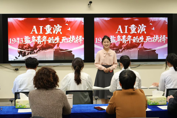 商学院韩浩灵同学创新运用AI技术构建了沉浸式历史情境《1943盐阜青年的生死抉择》,通过重演新四军青年在“任务”与“救民”之间的艰难抉择,深刻诠释了“人民至上”的历史必然与时代意义,展现了技术赋能思政教育的创新路径。马克思主义学院朱安培同学以《一把盐里的信仰》为题,聚焦盐城红色盐史,围绕“人民至上、家国为重”的核心信仰,运用AI技术还原了革命岁月中群众为根据地制盐、送盐的感人场景。教育科学学院葛于燕同学的《根脉所系,时代新声》围绕爱国精神的传承脉络展开教学,并结合盐师学子新疆支教的具体实践,号召青年做传统根脉的传承者与时代的发声者。文学院戴琪悦同学以《智读时代刻度,德铸青年之魂》为题,创新利用AI数字人解读“纳米、米、千米”中体现的中国故事,深刻诠释了个人成长与国家发展同频共振的时代命题。