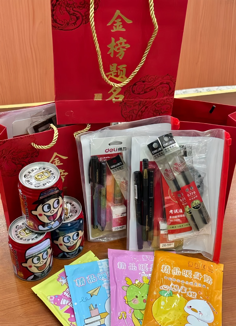 学院为考研学子准备了考研加油冲刺包,“金榜题名”祝福礼袋里不仅装满了连中三元、逢考必过、“暖宝”蓄志、好运旺旺、一举“糕“中,还承载着学院的温暖祝福和美好期望。