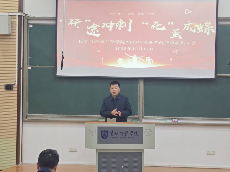 12月17日,化学与环境工程学院举办2026年考研考前冲刺动员大会。学院党政携所有毕业班班主任、辅导员老师以及2026届147名考研学子参加活动,学院党委副书记谭瑾主持活动。