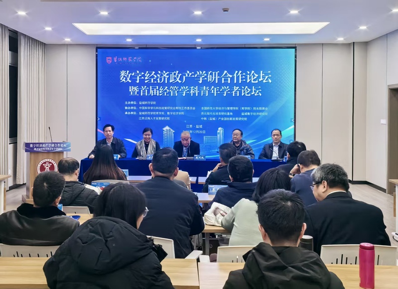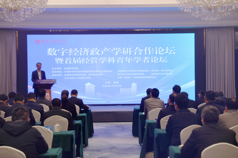 12月20日,“数字经济政产学研合作论坛暨首届经管学科青年学者学术论坛”在盐城成功举办。此次会议由盐城师范学院主办,中国科学学与科技政策研究会期刊工作委员会、全国师范大学经济与管理学院(商学院)院长联席会协办,我校商学院、数字经济学院、苏北现代化培育研究基地、盐城数字经济研究院、江苏沿海人才发展研究院、中韩(盐城)产业园创新发展研究院承办。吸引了来自政府部门、全国高校、科研院所及行业企业100余名知名专家与青年学者齐聚盐城,围绕“教育科技人才一体融通赋能数字经济高质量发展”的会议主题,共商数字经济发展大计,共绘政产学研协同发展新篇章。