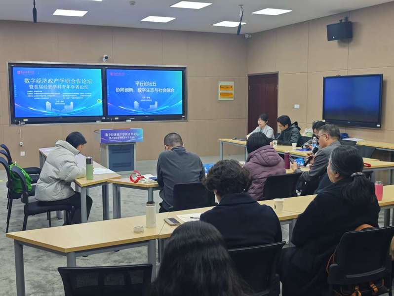 在当天下午举行的五个平行论坛中,与会学者围绕数字经济关键领域展开深度研讨。平行论坛一聚焦“数据要素、金融创新与数字市场”,与会学者就数据要素价值评估、金融科技发展、企业出海等议题进行报告与交流。平行论坛二以“产业数字化与智能化转型”为主题,探讨了跨境电商、绿色数字基建、人工智能与企业用工等前沿实践。平行论坛三关注“数字治理、政策协同与区域发展”,学者们从政策量化、区域协同、低碳物流等角度剖析了数字时代的治理逻辑。平行论坛四以“绿色数字技术与可持续发展”为主线,研讨了数字经济赋能绿色发展、气候政策与企业响应、低空经济等交叉领域。平行论坛五围绕“协同创新、数字生态与社会融合”,探索政产学研协同机制、数字金融与乡村振兴、大学科技园建设等系统性议题。每个平行论坛均由相关领域资深学者主持,并邀请权威期刊编辑进行专业点评,现场讨论热烈,学术氛围浓厚。