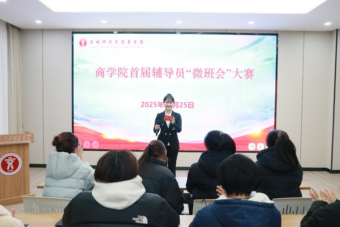12月25日晚,商学院在逸夫楼二楼李想数字报告厅举办首届辅导员“微班会”大赛。商学院领导班子、教师代表出席并担任评委。