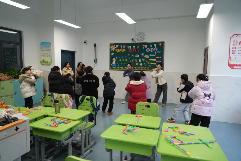 针对孩子们的认知特点,志愿者还将安全要领编成了生动易学的手势舞蹈。舞蹈专业的同学以肢体为语言,“小幅度摆手代表安全,大幅度摇晃代表危险”,用直观的律动传递信号。随后,志愿者现场讲授一套包含“管道上方不玩耍”“发现问题快报告”等要点的完整管道安全手势舞,孩子们专注地跟随模仿,在节奏与动作中牢记自救步骤。同时,通过管道模型拼装游戏、安全口诀朗诵、互动问答等环节,志愿者深入浅出地讲解了居家管道安全常识与应急处理流程。