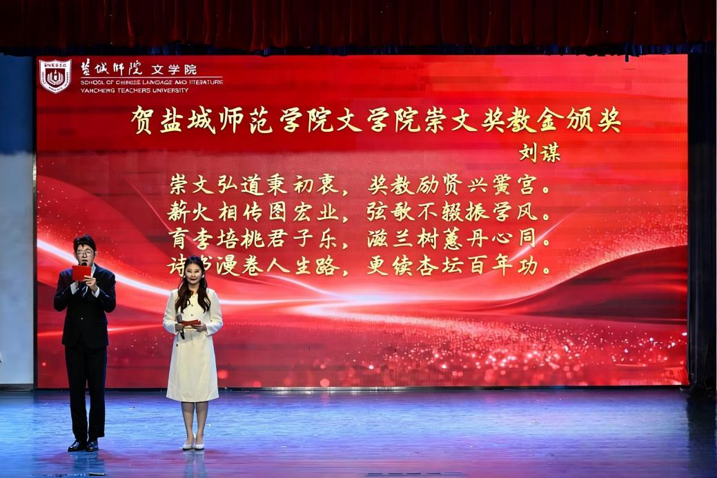 文学院院长李尧在讲话中指出,自首届奖教金颁发以来,其示范引领效应十分显著,获奖教师带头深耕课堂、攻坚科研,带动全院形成“比学赶帮超”的浓厚育人氛围。她希望更多校友与社会各界朋友能与学院并肩前行、同心聚力,共同培育有情怀、懂专业、能实战、善传播的新时代文科人才,为提升国家文化软实力贡献盐师中文力量。