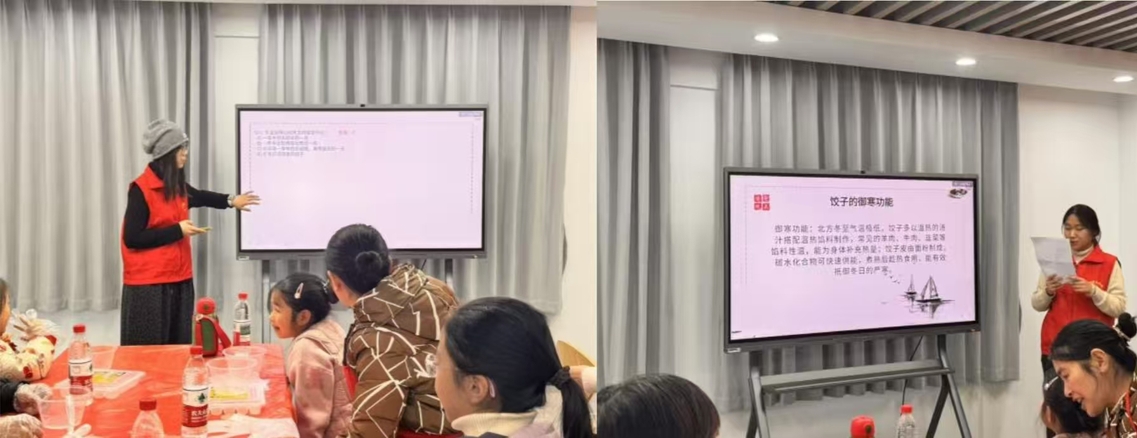 活动中,文学院学子为居民和孩子介绍了冬至的节气知识、传统习俗,并生动讲解了饺子“更岁交子”的吉祥寓意。在趣味抢答环节,志愿者围绕冬至故事与习俗提出问题,大家踊跃参与,在欢声笑语中增进了对节日的认知。