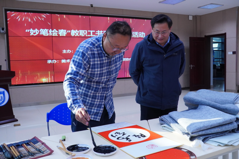 1月7日,由校工会、妇联主办,美术与设计学院分工会及校书画协会承办的“妙笔绘春——教职工书画迎新春活动”在新长校区举行。学校党委常委、副校长张桂华现场指导。