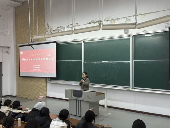 1月12日上午,马克思主义学院在公共教学楼C201召开2026届毕业生就业工作推进会。学院党委书记高娟出席会议,毕业班班主任、辅导员、2026届全体毕业生参加会议。学院党委副书记吴惠主持会议。