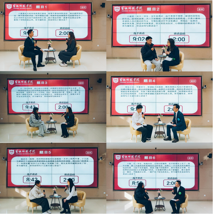 谈心谈话环节中,辅导员面对模拟的学生成长困惑场景,以温情对话化解疑虑、以专业引导明晰方向。用一次次有温度、有深度、有力度的对话,传递关怀与力量,彰显辅导员队伍过硬的沟通技巧和育人水平。