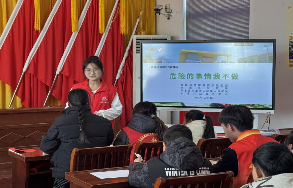 安全是成长的基石,守护是责任的底色。为深入贯彻总体国家安全观,积极响应团中央“少年儿童安全守护计划”部署要求,近日,一场以“危险的事情我不做”为主题的未成年人安全防护公益宣讲活动,在江苏省盐城市响水县陈家港镇下辛村党群服务中心温情举办。本次活动由盐城师范学院商学院团委牵头,联合响水县民政局、陈家港未成年人保护站及心途公益服务中心共同策划实施,以精准化安全科普、互动化实践教学为抓手,为少年儿童筑牢生命安全防线,奏响校地社协同守护的时代强音。